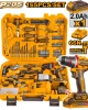 At its core, the set includes a powerful 20V Cordless Brushless Impact Drill that delivers maximum torque, longer runtime, and higher efficiency compared to brushed models. Its brushless technology guarantees less heat, longer tool life, and superior performance for drilling, fastening, and impact applications.